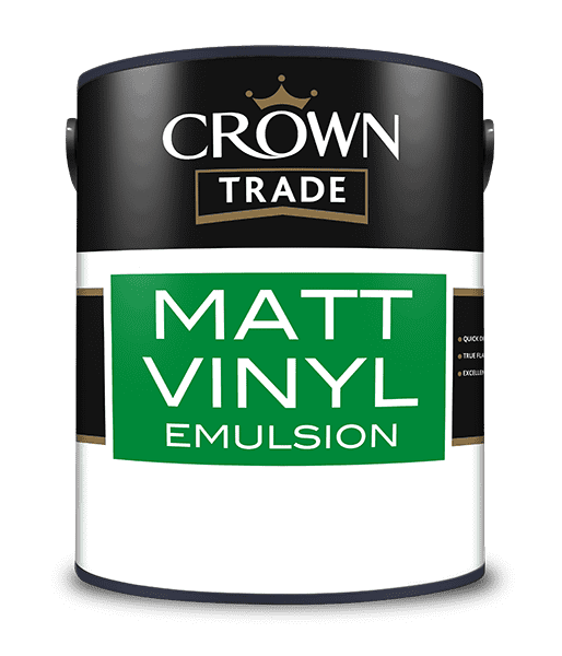 Crown Trade Matt Vinyl Emulsion is a premium quality, high opacity, emulsion for interior use on wall and ceiling surfaces where a flat non-reflective finish is required. It is easy to apply, is quick drying, has excellent opacity with a low sheen, true flat matt finish.