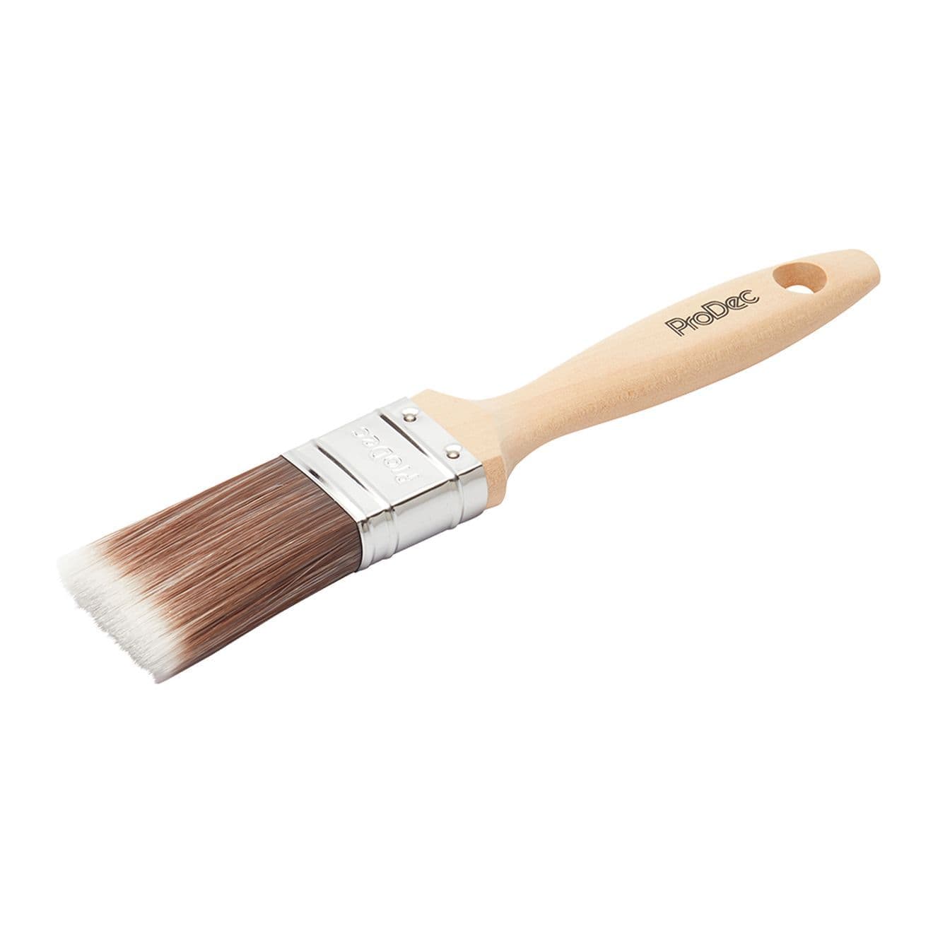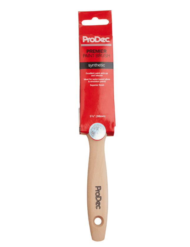 The ProDec Premier Synthetic Flat Brush is ideal for water-based paints including emulsions, gloss and satin, as well as wood stains and varnishes. The top quality pure synthetic filaments produce smooth paint release and a superb trade finish with minimal brush marks. The full bodied head creates optimum paint holding and gets the job done quicker. The shaped wooden handle provides maximum comfort even during extended use. Use the 1.5" (38mm) size brush architrave, skirting panels, window frames, and furniture.