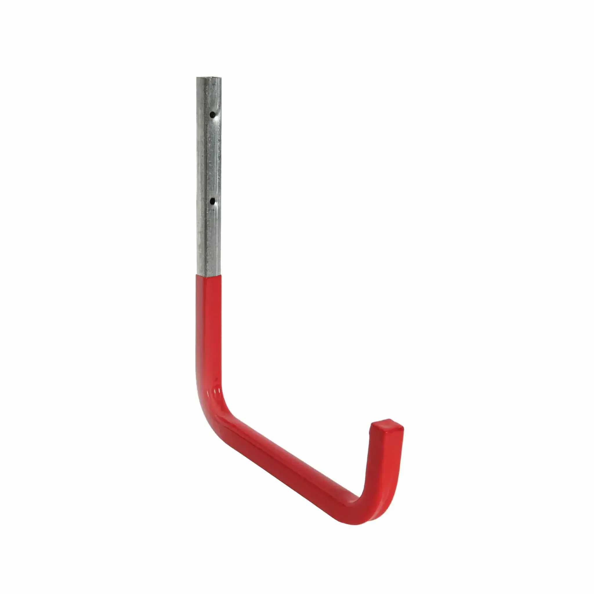 The Rothley 250mm wall-mounted J-shaped hook is a robust steel construction with a red plastic protective coating. It has a 30kg load capacity making it ideal for storing large and heavy items that might otherwise clutter floor space. This includes items like ladders, garden tools, sports equipment, kayaks, etc. Suitable for internal and external use, depending on the specific coating. Easy to install with suitable screws and plugs.