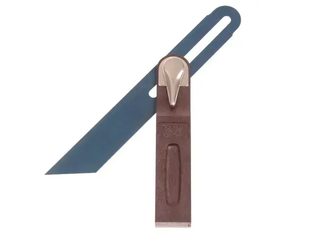 Chrome plated metal locking lever to secure blade. Used for accurately transferring angles from one piece of work to the other. Hardened and tempered blade with blued finish. Sliding blade can be locked into position by means of a plated lever.