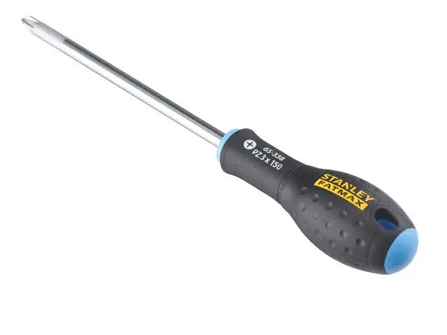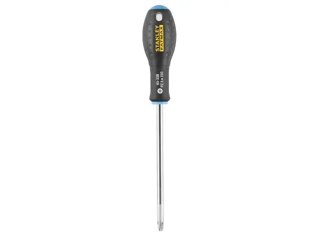 The Stanley FatMax® Pozidriv tip screwdrivers have a chrome vanadium steel bar which allows high torque and reduces the risk of tip breakage, and the handle is moulded directly to the shaft for a virtually unbreakable bond which gives long life and durability.