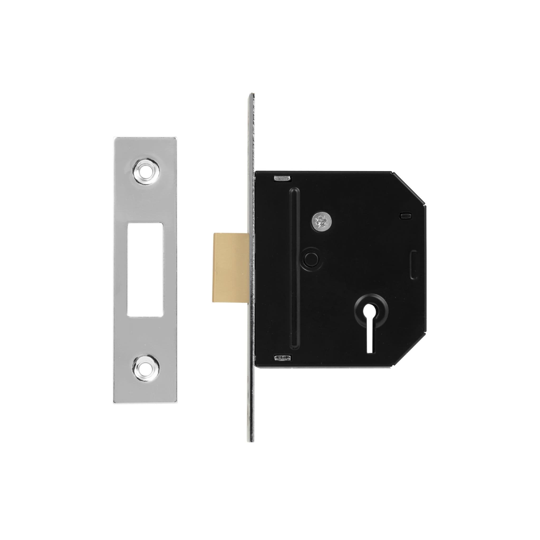 The Union Essentials is a 3.0 inch 3 lever mortice dead lock designed for timber doors. It has a deadbolt that is locked and unlocked via a key. This lock is ideal for residential or light commercial applications where a high level of security is not required. It is easy to install and comes supplied with a strike plate and fixings. This lock is an easy retro fit for many existing UK mortice locks. Chrome finish.